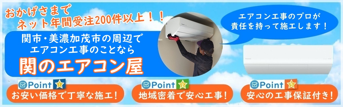 関市のエアコン屋は家庭用のエアコン工事を主にエアコン取り付け・取り外し工事をおこなっている地域密着のエアコン工事業者で、関市を中心に岐阜県で活動しております。